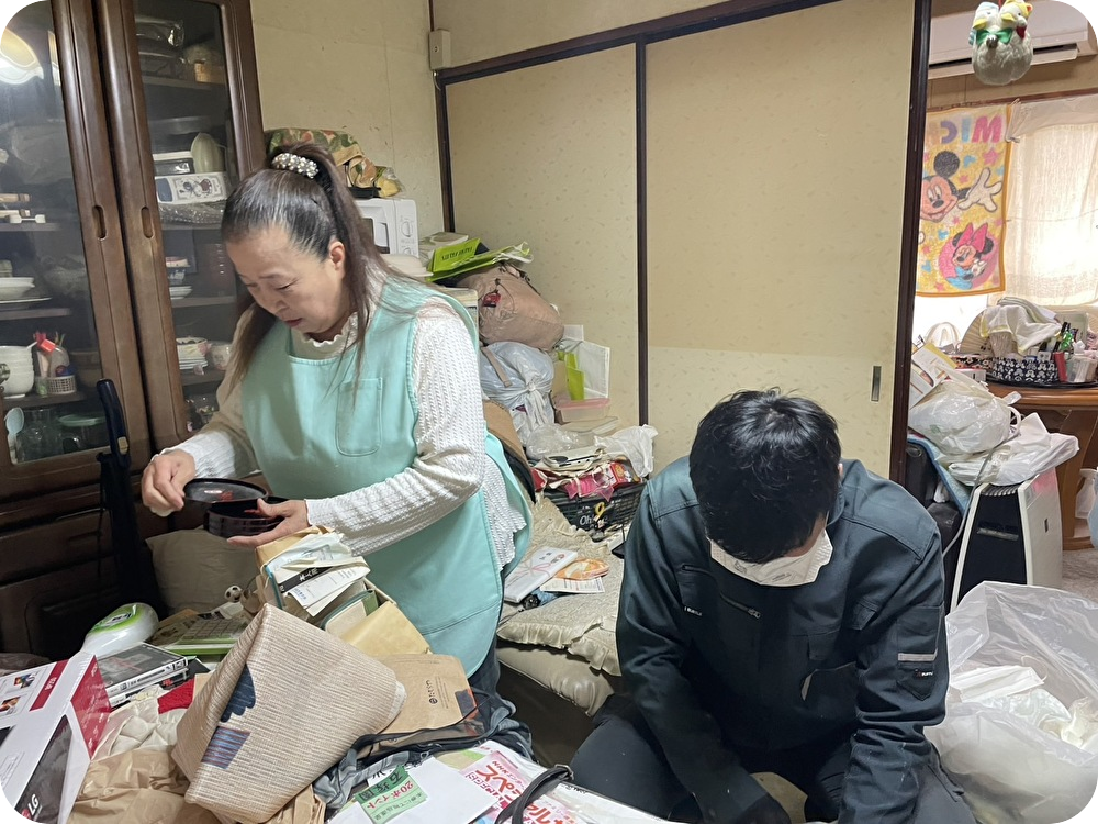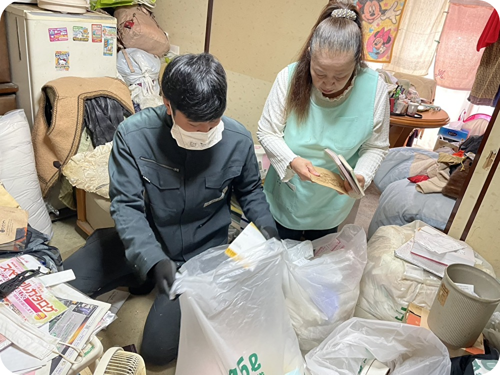 私、一人では片付けられないから一緒に片付けてくれる?ついでに不用品回収も依頼したいんだけど
